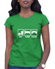 Eat Sleep Game Funny Gamers Gaming Womens-Tshirt